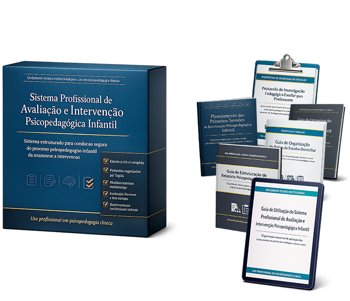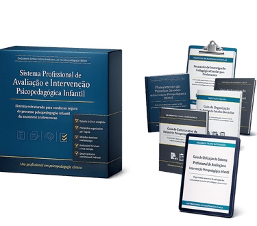 Um sistema clínico estruturado que organiza a condução da avaliação psicopedagógica infantil desde o primeiro atendimento até a elaboração do relatório e definição das intervenções.